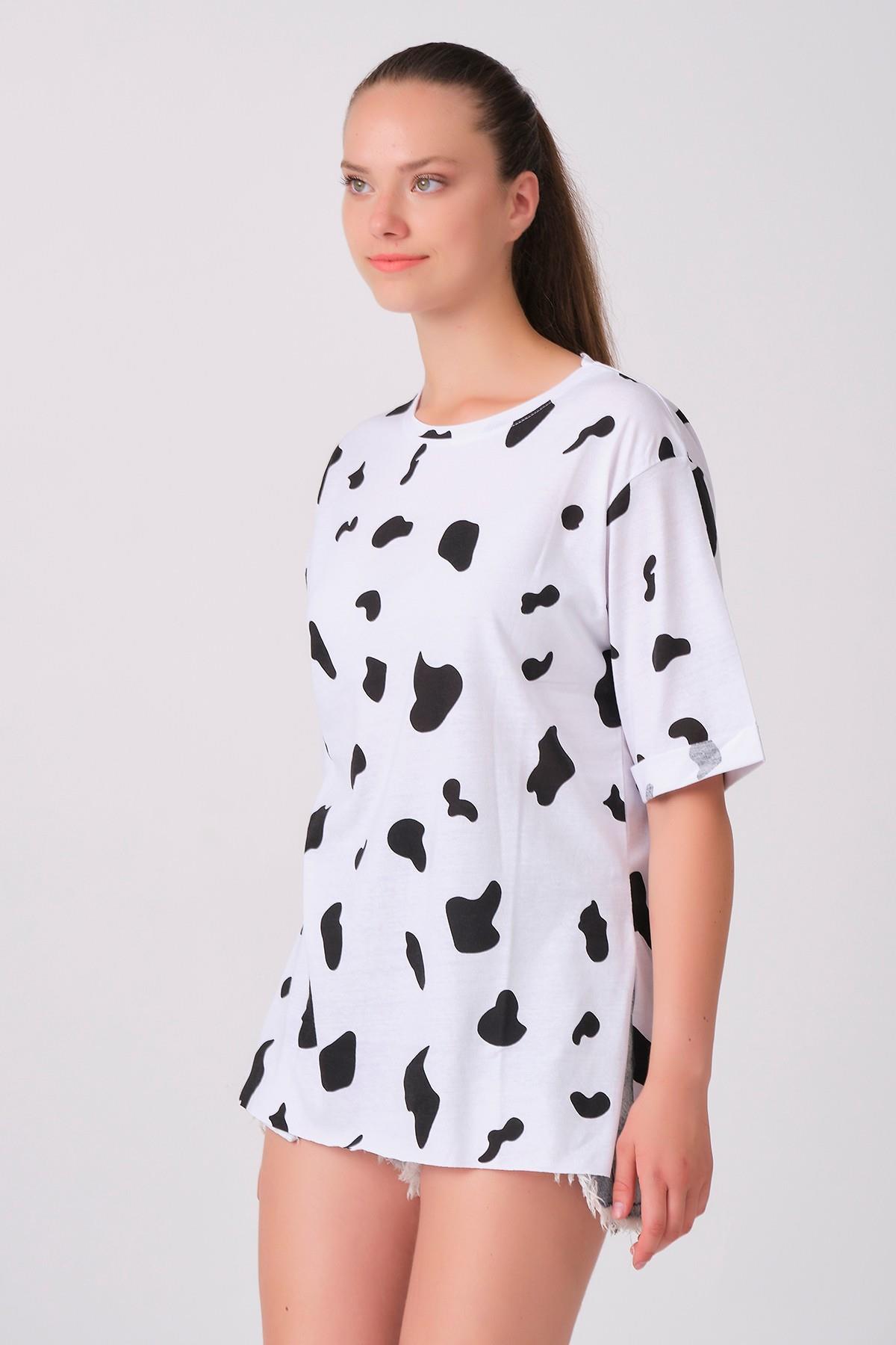 As Collection Beyaz Benek Desenli Kadın T-Shirt (ASM022)