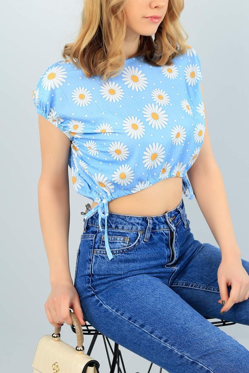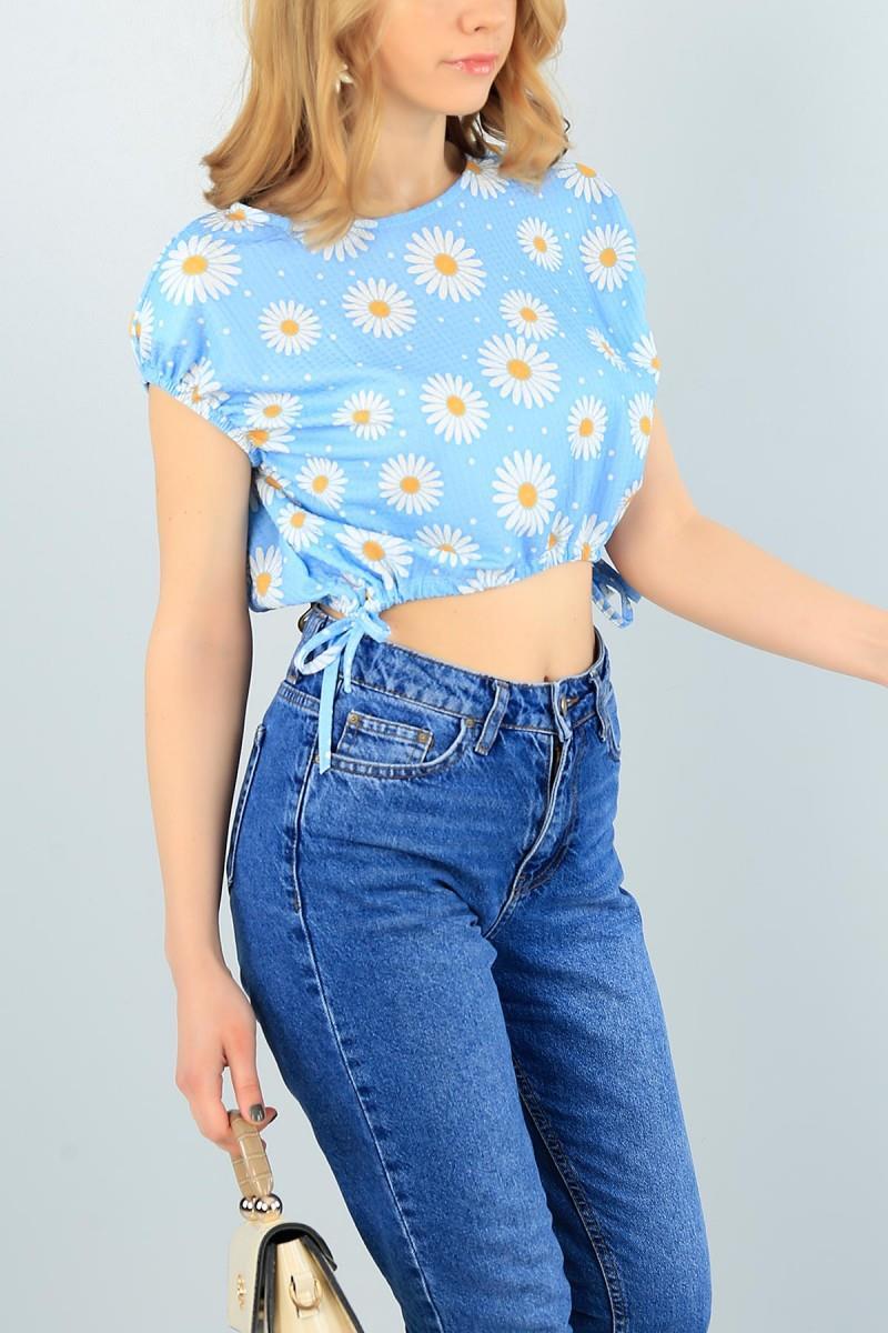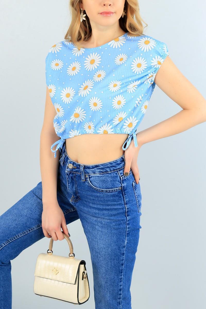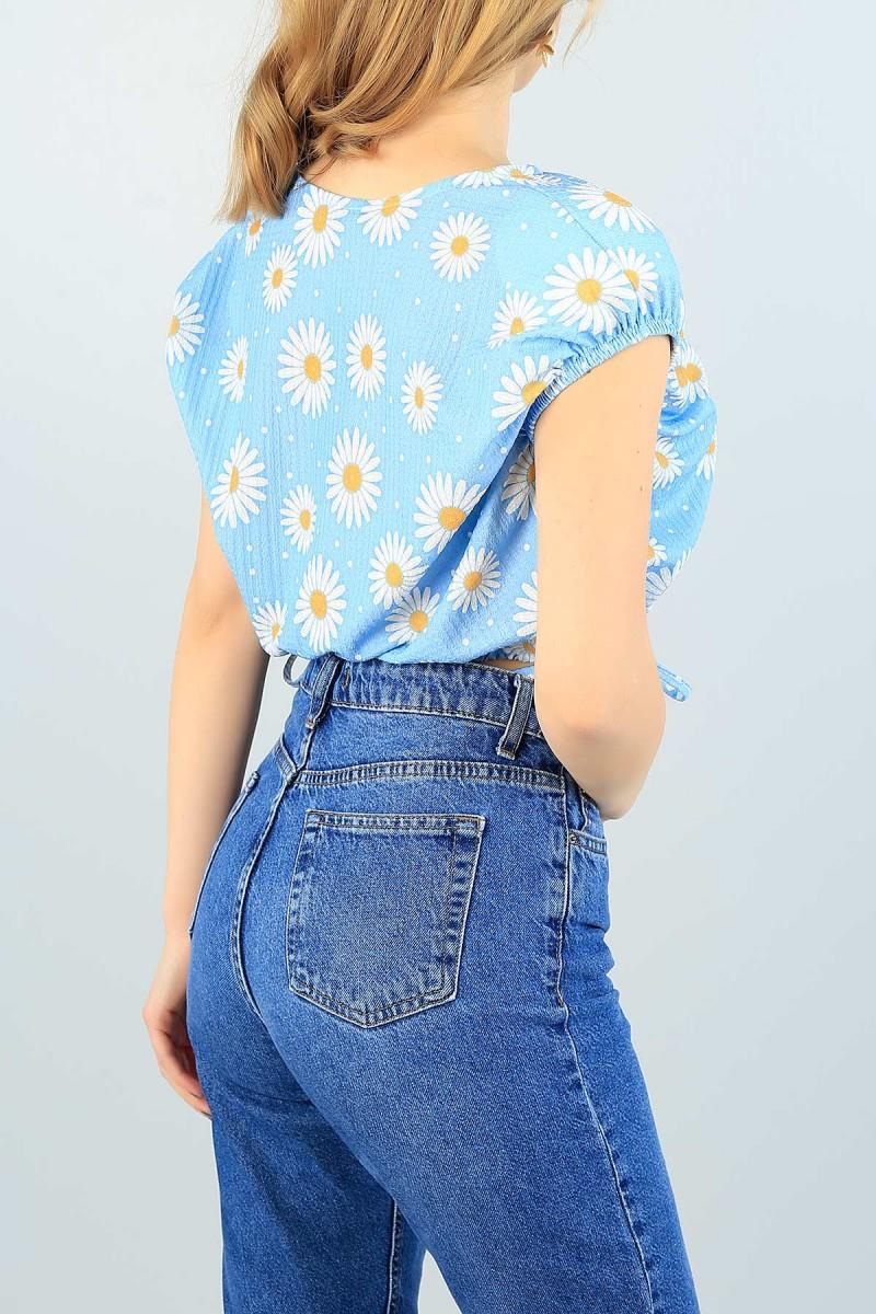 As Collection Mavi Kolları Lastikli Vatkalı Kadın Bluz (MB62232)