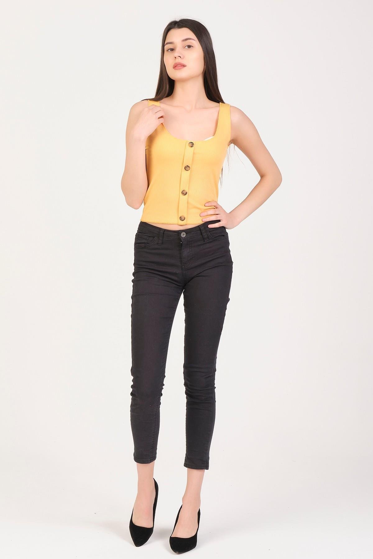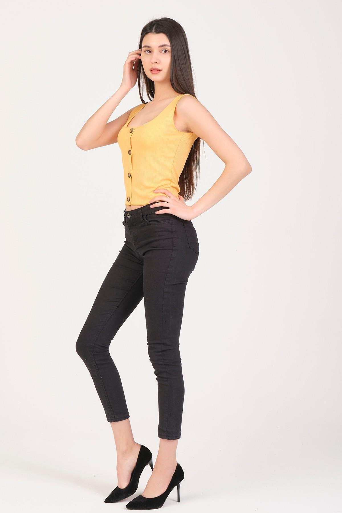 As Collection Sarı Düğmeli Kolsuz Kadın T-Shirt (UG1016)