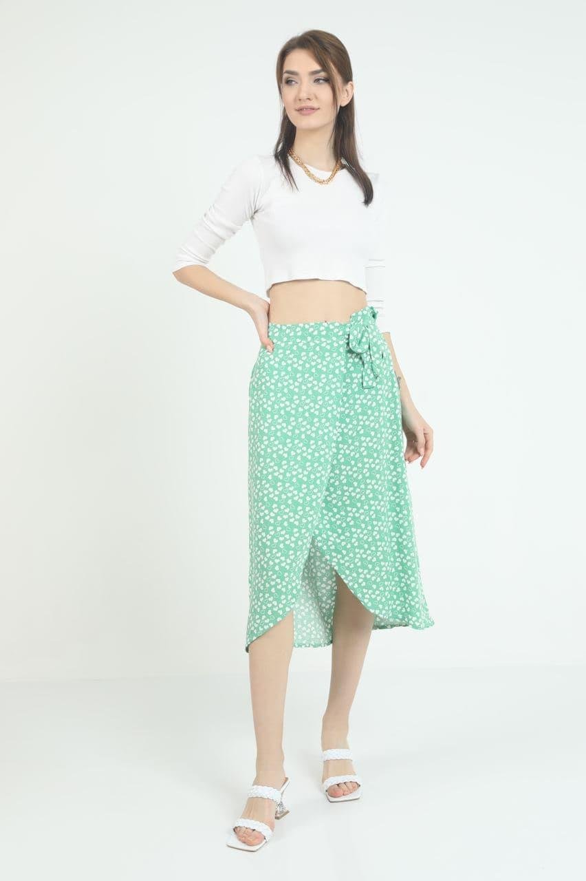 As Collection Yeşil Dokuma Kemer Bağlamalı Kadın Etek (BP1238-7)